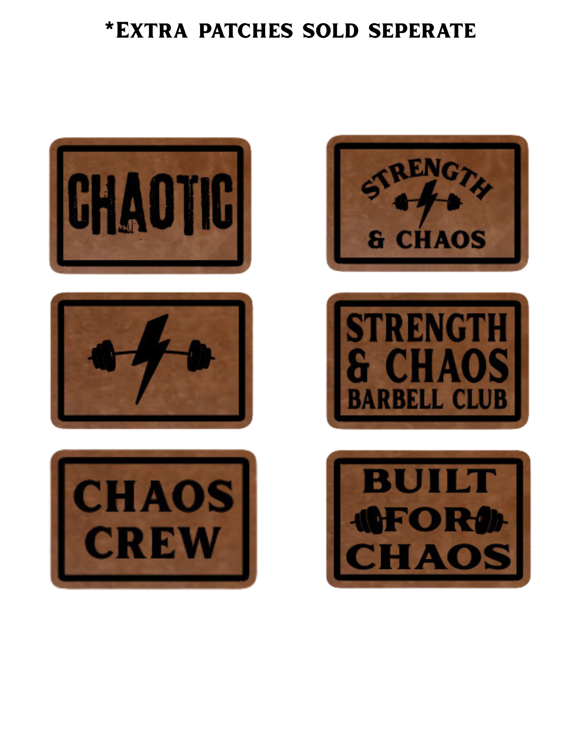 1 Strength & Chaos logo leatherette patch included. All others sold separate.